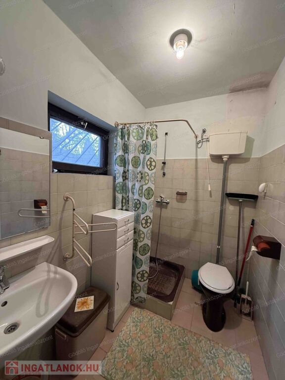 Elosztás: előtér, nappali, konyha-étkező, egy szoba, zuhanyzós fürdő.