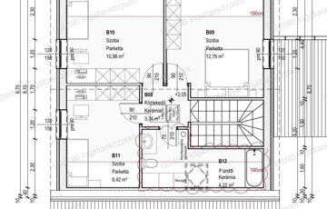 - Emelet: 3 szoba, közlekedő, tároló, mosókonyha/fürdő.